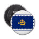 Bottle Opener with the flag of Quebec City, the capital city of Quebec, Canada. A blue flag with a white outline and a yellow ship in the centre