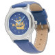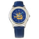 Watch with the flag of Quebec City, the capital city of Quebec, Canada. A blue flag with a white outline and a yellow ship in the centre