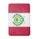 Bath mat with flag of city of Raleigh, North Carolina; flag with three vertical bands of red and white with city’s seal in the centre