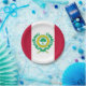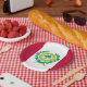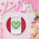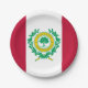 Paper Plate with flag of city of Raleigh, North Carolina; flag with three vertical bands of red and white with city’s seal in the centre