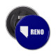 Button bottle opener with flag of city of Reno, Nevada; blue flag with white shape of Nevada with star symbolising Reno’s location inside the state