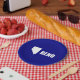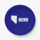 Paper Plate with flag of city of Reno, Nevada; blue flag with white shape of Nevada with star symbolising Reno’s location inside the state