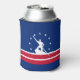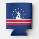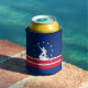Can Cooler with flag of city of Richmond, Virginia; blue flag with red and white stripes, with white stripes and silhouette of man working James river bateau down the James river