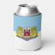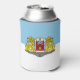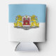 Can Cooler with design with flag of Riga, capital city of Latvia; white and blue flag with coats of arms with two golden lions holding a shield in the centre