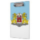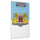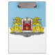Clipboard with design with flag of Riga, capital city of Latvia; white and blue flag with coats of arms with two golden lions holding a shield in the centre