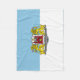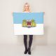 Blanke with design with flag of Riga, capital city of Latvia; white and blue flag with coats of arms with two golden lions holding a shield in the centre