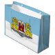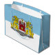 Large Gift Bag with design with flag of Riga, capital city of Latvia; white and blue flag with coats of arms with two golden lions holding a shield in the centre