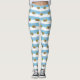 Leggins with design with flag of Riga, capital city of Latvia; white and blue flag with coats of arms with two golden lions holding a shield in the centre