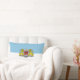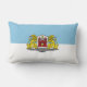 Lumbar Pillow with design with flag of Riga, capital city of Latvia; white and blue flag with coats of arms with two golden lions holding a shield in the centre