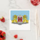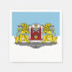 Paper napkin with design with flag of Riga, capital city of Latvia; white and blue flag with coats of arms with two golden lions holding a shield in the centre