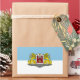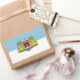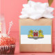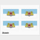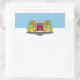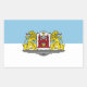 Sticker with design with flag of Riga, capital city of Latvia; white and blue flag with coats of arms with two golden lions holding a shield in the centre