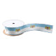 Ribbon with design with design with flag of Riga, capital city of Latvia; white and blue flag with coats of arms with two golden lions holding a shield in the centre