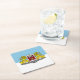 Paper coaster with design with flag of Riga, capital city of Latvia; white and blue flag with coats of arms with two golden lions holding a shield in the centre