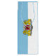Wine Gift Bag with design with flag of Riga, capital city of Latvia; white and blue flag with coats of arms with two golden lions holding a shield in the centre