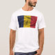 T-Shirt with the flag of Romania in wavy fabric style design. This T-Shirt design features the Romanian flag colours and design with a beautiful waving material textured effect. This flag design is a great way to show you are proud to be from Romania.