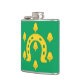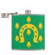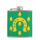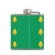 Vinyl wrapped flask with design with a flag of historic county of Rutland, in England, Great Britain; green flag with acorns and a golden horseshoe in the centre