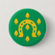 Round Button with design with a flag of historic county of Rutland, in England, Great Britain; green flag with acorns and a golden horseshoe in the center