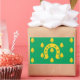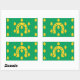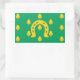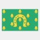 Sticker with design with a flag of historic county of Rutland, in England, Great Britain; green flag with acorns and a golden horseshoe in the centre