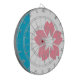Dartboard with a design with the flag of Salem, Oregon. A white and blue flag with a pink cherry blosson