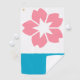 Golf Towel with a design with the flag of Salem, Oregon. A white and blue flag with a pink cherry blosson