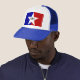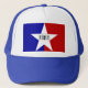 Hat with the flag of San Antonio, Texas. A blue and red flag with white star and an illustration of Alamo in the middle