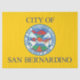 This design features the city flag of San Bernardino, which is a city located in the Inland Empire region of Southern California. The city serves as the county seat of San Bernardino County, California. It is located on the floor of the San Bernardino Valley to the south of the San Bernardino Mountains.