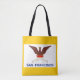 Tote bag with flag of city of San Francisco, California; white flag with yellow border with an illustration of a phoenix rising from flames