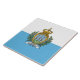 This design features the national flag of San Marino (officially the Republic of San Marino), which is a microstate in Southern Europe completely enclosed by Italy. San Marino is located on the northeastern side of the Apennine Mountains. Its capital is the City of San Marino and its largest settlement is Dogana. The capital is set at the highest point of the country on a steep mountain. San Marino's official language is Italian, however, Romagnol is the historical language of the region and still exists in a non-official capacity.