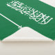 This design features the national flag of Saudi Arabia (officially known as the Kingdom of Saudi Arabia, or KSA), which is a country in Western Asia that makes up the vast majority of the Arabian Peninsula. Saudi Arabia is bordered by Jordan and Iraq to the north, Kuwait to the northeast, Qatar, Bahrain, and the United Arab Emirates to the east, Oman to the southeast and Yemen to the south; it is separated from Egypt and Israel in the north-west by the Gulf of Aqaba. The capital of Saudi Arabia is Riyadh, which is also the country's largest city. Other major cities and towns in Saudi Arabia include Jeddah, Mecca (officially Makkah al-Mukarramah), Medina, Hofuf, Ta'if, Dammam, Buraidah, Khobar, Tabuk, Qatif, Khamis Mushait, Ha'il, Hafar Al-Batin, Jubail, Kharj, Abha, Najran, Yanbu and Al Qunfudhah.