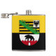 Vinyl wrapped flask with variant flag of Saxony-Anhalt; design with two horizontal bands of yellow (golden) and black, and with state’s coat of arms in the centre