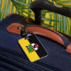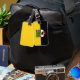 Luggage Tag with variant flag of Saxony-Anhalt; design with two horizontal bands of yellow (golden) and black, and with state’s coat of arms in the centre