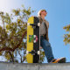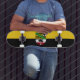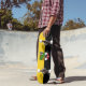Skateboard with variant flag of Saxony-Anhalt; design with two horizontal bands of yellow (golden) and black, and with state’s coat of arms in the centre