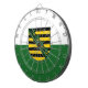 Dartboard with variant flag of Saxony; design with two horizontal bands of green and white, and with state’s coat of arms in the center