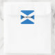 The Flag of Scotland, (Scottish Gaelic: Bratach na h-Alba, Scots: Banner o Scotland), also known as Saint Andrew's Cross or the Saltire, is the national flag of Scotland. As the national flag it is the Saltire, rather than the Royal Standard of Scotland, which is the correct flag for all individuals and corporate bodies to fly in order to demonstrate both their loyalty and Scottish nationality. It is also, where possible, flown from Scottish Governmentbuildings every day from 8am until sunset, with certain exceptions. According to legend, the Christian apostle and martyr Saint Andrew, the patron saint of Scotland, was crucified on an X-shaped cross at Patras, (Patrae), in Achaea. Use of the familiar iconography of his martyrdom, showing the apostle bound to an X-shaped cross, first appears in the Kingdom of Scotland in 1180 during the reign of William I. This image was again depicted on seals used during the late 13th century; including on one particular example used by the Guardians of Scotland, dated 1286.