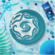 This design features the city flag of Seattle, which is a seaport city on the West Coast of the United States. Seattle is the largest city in both the state of Washington and the Pacific Northwest region of North America. Seattle is situated on an isthmus between Puget Sound (an inlet of the Pacific Ocean) and Lake Washington. Seattle is the most northerly large city in the United States, located about 100 miles south of the Canadian border. The flag of Seattle is white and teal, and it features a portrait of the Native American Chief Seattle (after whom the city was named) in the center. It also contains one of the mottoes of Seattle: "City of Goodwill".