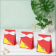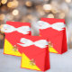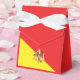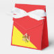 Celebrate your special event with this charming Sicilian-themed tent favour box, tied with an elegant white satin ribbon. The front features the Sicilian flag in vibrant red and yellow with the iconic Trinacria, while the back is solid red with a Trinacria icon and custom white wording for names, dates, or a short message. Perfect for weddings, birthdays, anniversaries, or Sicilian-themed parties, these boxes are ideal for holding candies, small treats, or keepsakes, adding a personalised and festive touch to your celebration.