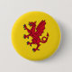 Round Button with design with a flag of historic county of Somerset, in England, Great Britain; yellow flag with an illustration of a red dragon in the centre