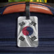 Luggage tag with the flag of South Korea in wavy fabric style design. This design features the South Korean flag colours and design with a beautiful waving material textured effect. This flag design is a great way to show you are proud to be from South Korea.