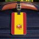 The flag of Spain with personalised contact info on the reverse side. Enter your information in place of the sample text for a custom luggage tag.