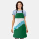 Apronr with a design with the flag of Spokane, Washington. A white and green flag with blue lines symbolising the Spokane river and Spokane Falls and a yellow sun