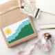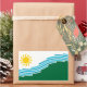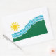 Sticker with a design with the flag of Spokane, Washington. A white and green flag with blue lines symbolising the Spokane river and Spokane Falls and a yellow sun