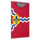 Clipboard with flag of city of St. Louis; red flag with white and blue waves and blue fleur-de-lys in yellow circle