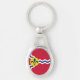 Keychain with flag of city of St. Louis; red flag with white and blue waves and blue fleur-de-lys in yellow circle