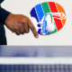 Ping Pong Paddle with a design with the flag of St. Petersburg, Florida. A flag with orange, red, green, blue, and navy blue stripes with a symbol of white pelican