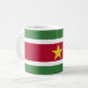 This design features the national flag of Suriname (officially known as the Republic of Suriname), which is a country on the northeastern Atlantic coast of South America. Suriname is bordered by the Atlantic Ocean to the north, French Guiana to the east, Guyana to the west and Brazil to the south. Suriname is the smallest sovereign state in South America. Most of the country's population live on the north coast, in the region of Suriname's capital and largest city, Paramaribo.