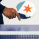 Ping Pong Paddle with a design with the flag of Syracuse, New York. A blue, white, and yellow flag