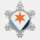 Snowflake Ornament with a design with the flag of Syracuse, New York. A blue, white, and yellow flag