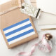 Sticker with design with design with flag of Tallinn, capital city of Estonia; white and blue striped flag