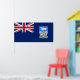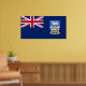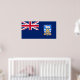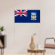 This design features the flag of the Falkland Islands (known in Spanish as "Islas Malvinas"), which is an archipelago on the Patagonian Shelf in the South Atlantic Ocean. The main islands are about 300 miles east of South America's southern Patagonian coast and about 752 miles from the northern tip of the Antarctic Peninsula. The archipelago has an area of around 4,700 square miles. It comprises East Falkland, West Falkland and 776 smaller islands. The Falkland Islands is a British Overseas Territory. The capital city of the Falkland Islands is Stanley (also known as Port Stanley), which is on East Falkland.