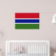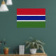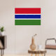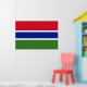 This design features the national flag of The Gambia (officially known as the Republic of The Gambia), which is a country in West Africa. The Gambia is the smallest country within mainland Africa, and it is surrounded by Senegal, except for its western coast on the Atlantic Ocean. The Gambia is situated on both sides of the lower reaches of the Gambia River, the nation's namesake. The Gambia River flows through the centre of The Gambia and empties into the Atlantic Ocean. The capital city of The Gambia is Banjul, whereas the largest city of The Gambia is Serekunda.